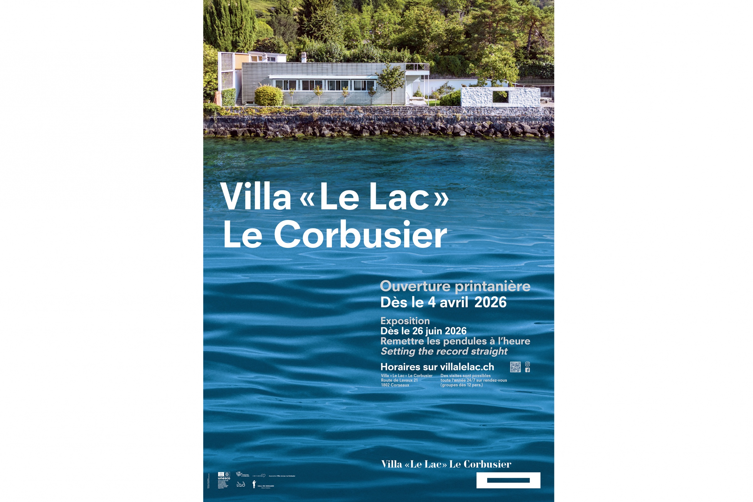 La Villa «Le Lac» rouvre ses portes samedi 4 avril à 14h00. En prémices à notre grande exposition estivale REMETTRE LES PENDULES À L'HEURE (dès le 26/6/26), nous vous invitons d'ores et déjà à découvrir les dessous de l'Histoire de la Villa «Le Lac», du Mouvement Moderne et de Le Corbusier.